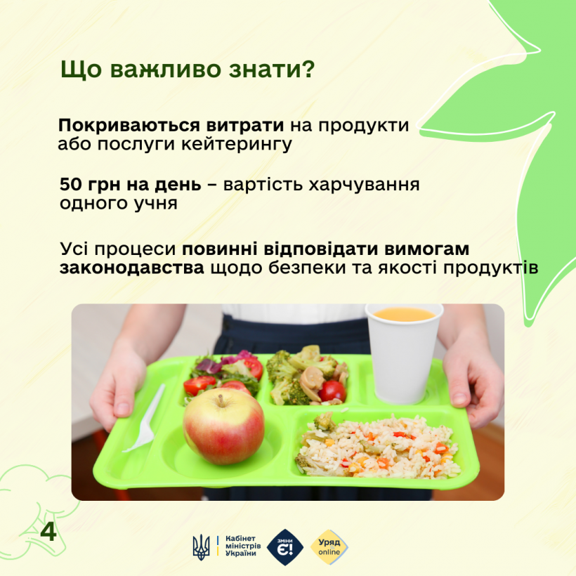 Школи зможуть самі готувати їжу або замовляти кейтеринг. 50 грн на день – вартість харчування одного учня. Це можуть бути сніданки чи обіди, залежно від того, як організоване навчання.