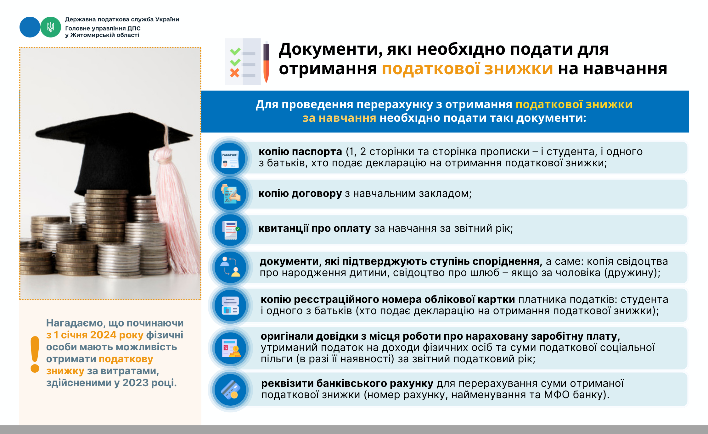 Документи, які необхідно подати для отримання податкової знижки на навчання