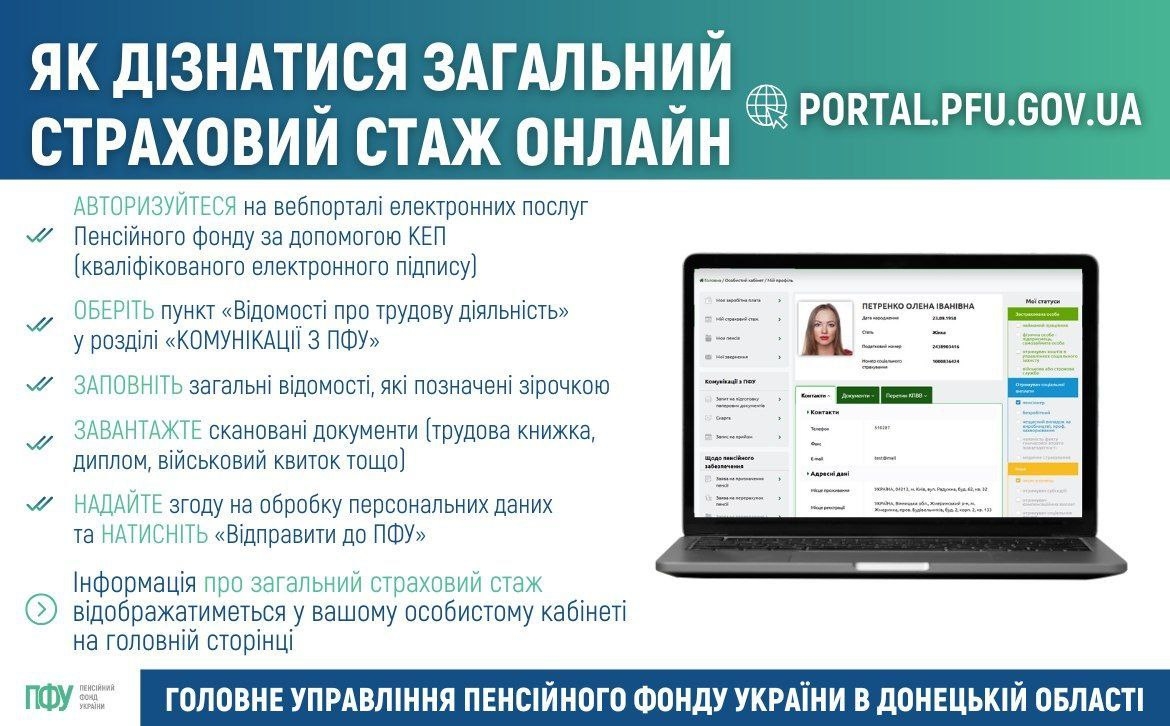 Після обробки звернення інформація про загальний страховий стаж відображатиметься в особистому кабінеті на вебпорталі Пенсійного фонду України https://portal.pfu.gov.ua.