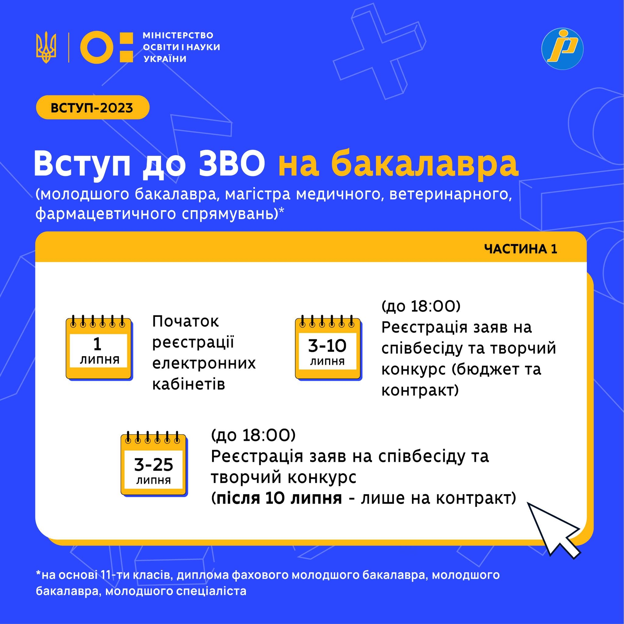 1 липня розпочнеться реєстрація вступних кабінетів. А до 10 липня можна буде подати заяви на співбесіду і творчий конкурс, якщо вступник планує навчатися на бюджеті. Якщо на контракті, то подання триватиме до 25 липня.