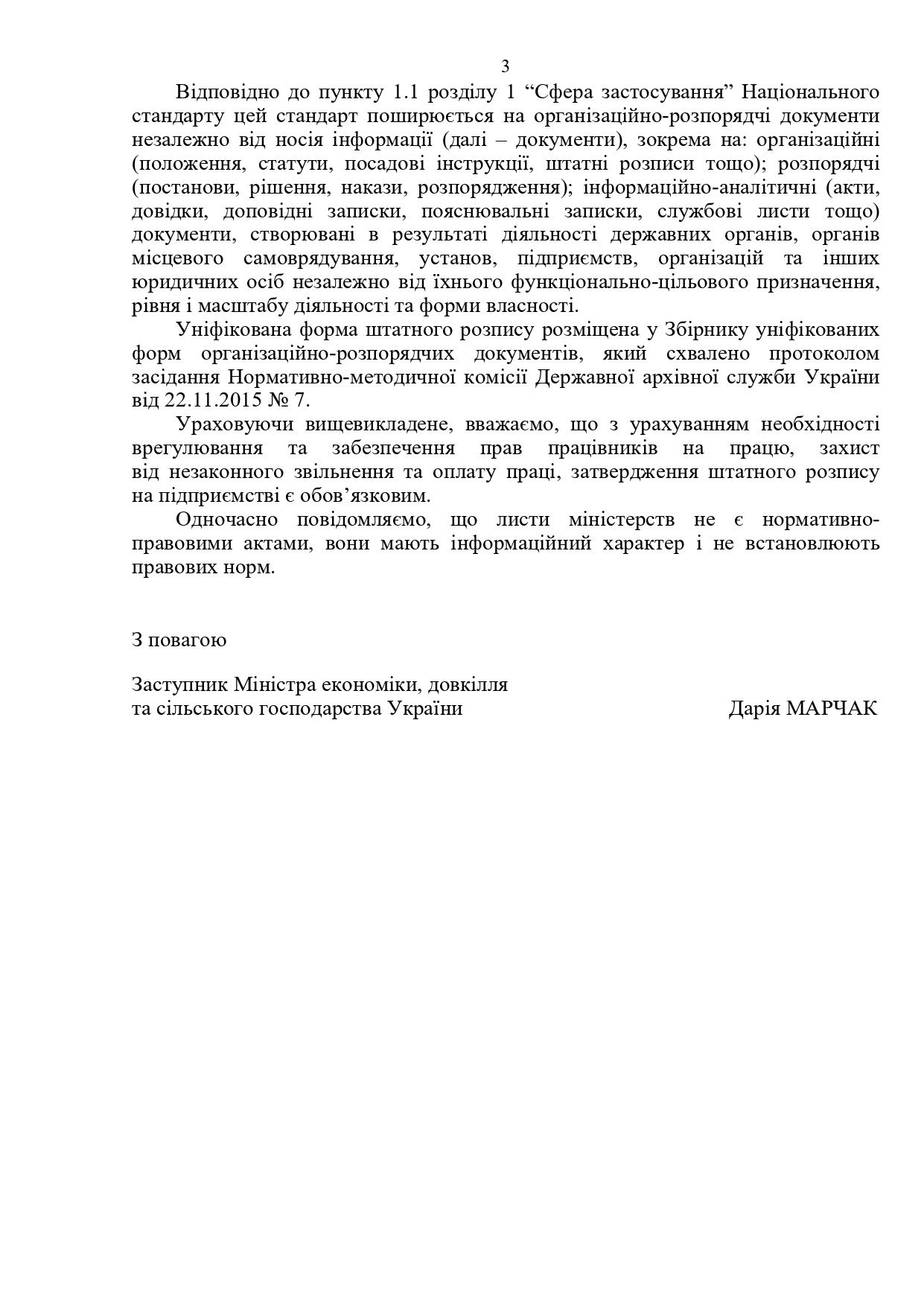 Лист Мінекономіки: щодо затвердження штатного розпису
